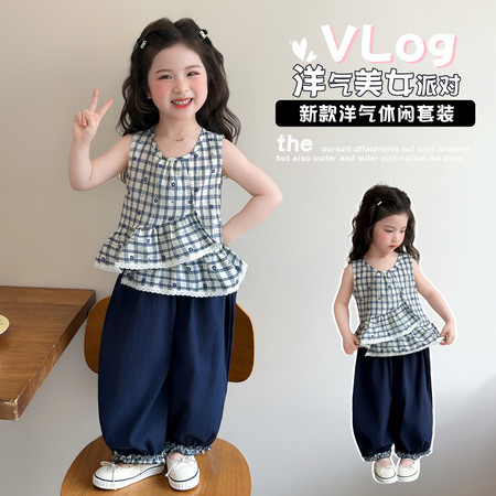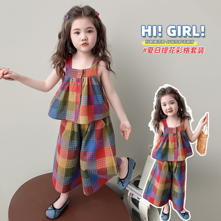 小妖乖&绿格无袖衬衫套装