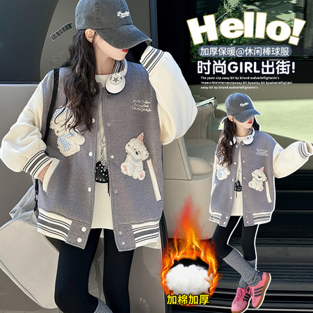 睿豆豆&25258刺绣小狗夹棉加厚棒球服外套
