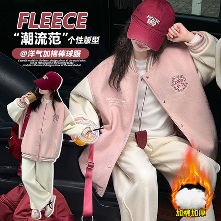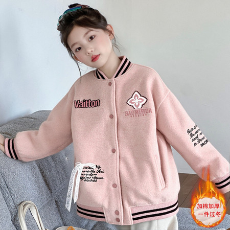 睿豆豆&25257刺绣蝴蝶结夹棉加厚棒球服外套