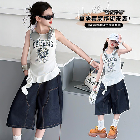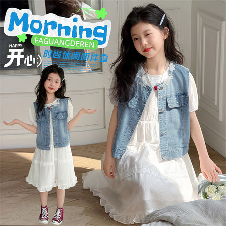 nn童装&25183---夏款织金小鹿马面裙套装