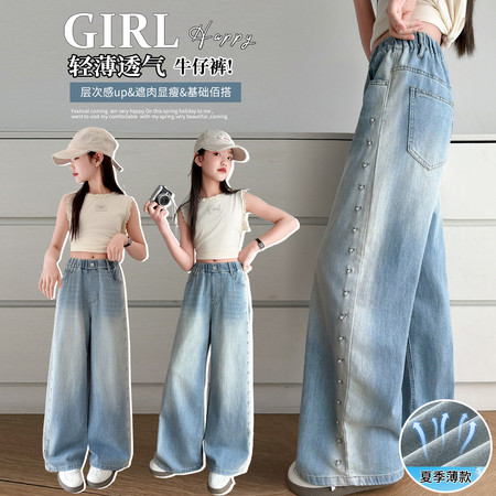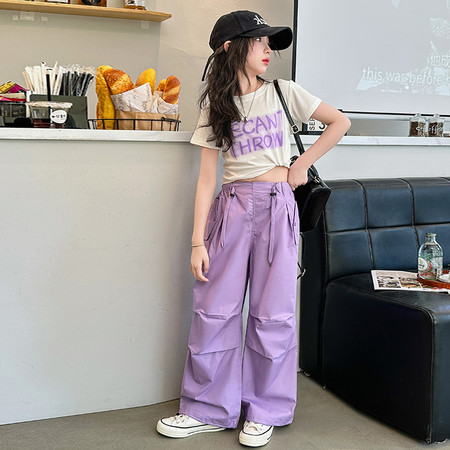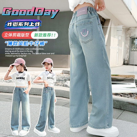 豪涵童装&夏款绣花紫色笑脸牛仔长裤2540