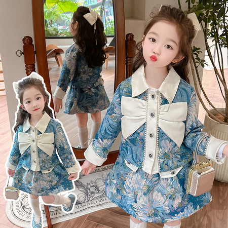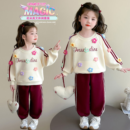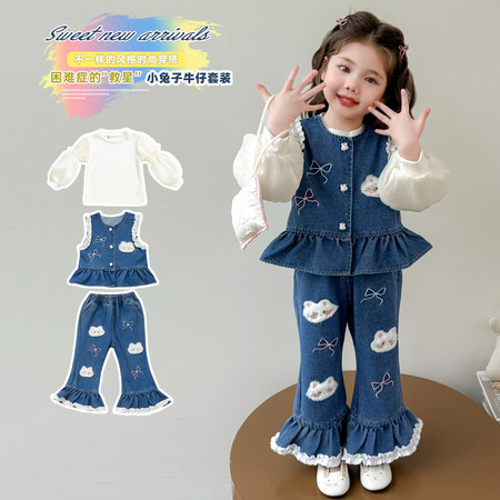 漂亮优贝童装&2927款款立体花朵衬衫烫钻牛仔两件套