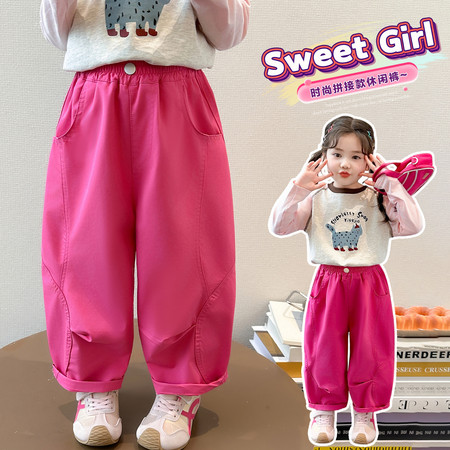 童依缘&玫红色弯刀裤