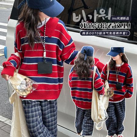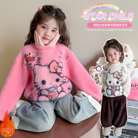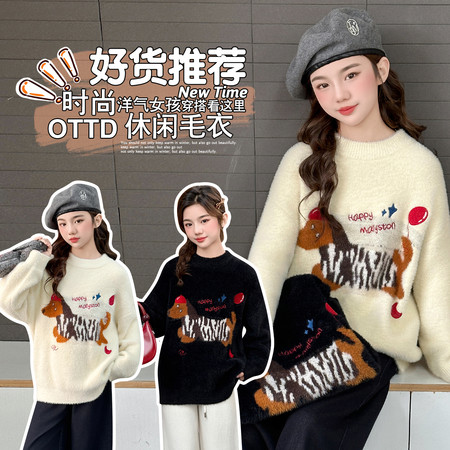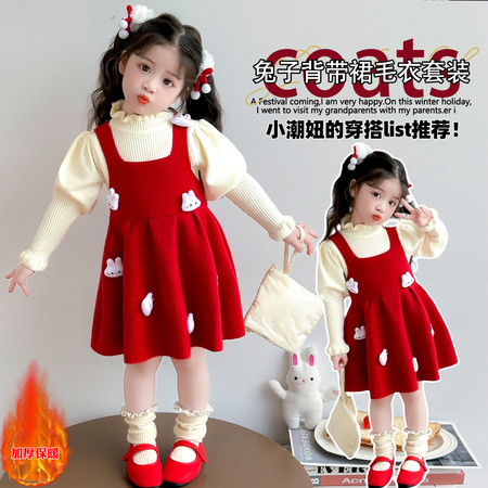 小豆町&XDD-084卡通兔毛衣连衣裙套装