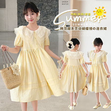 星星年华&DX04625蝴蝶领淡黄色连衣裙