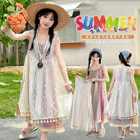 星星年华&DX04635波西米亚碎花连衣裙两件套