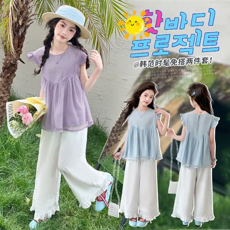 星星年华&DX04807飞袖竖条纹上衣纯色裤子