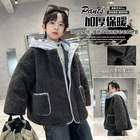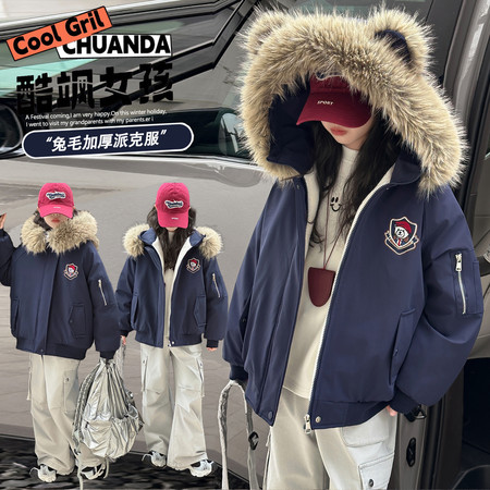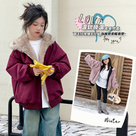 爆版熊&B57-两面穿连帽加厚皮草外套