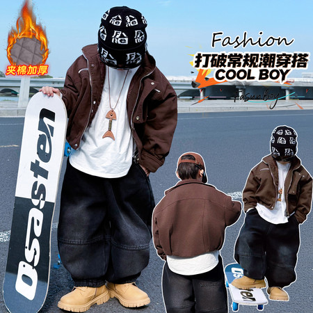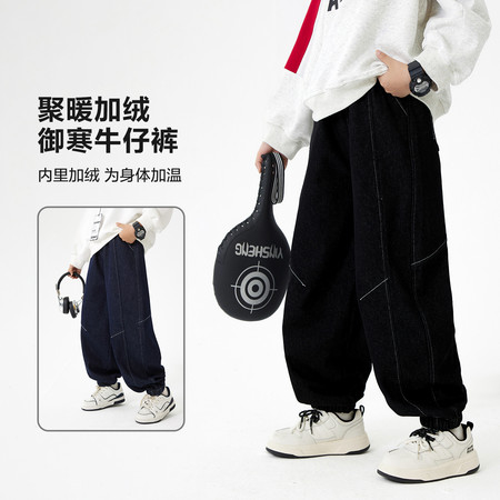 睿豆豆&25277工艺侧边波浪线加绒牛仔裤