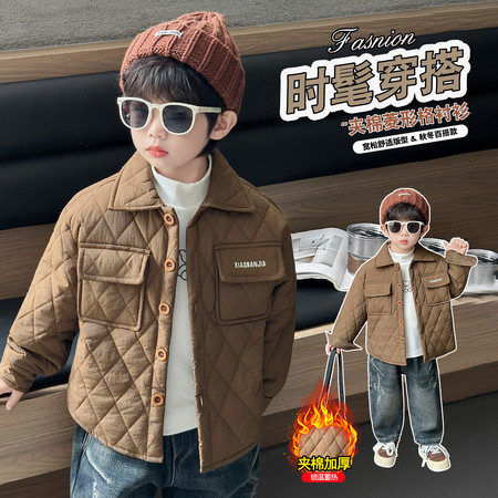 小班家&24295袋盖绣花夹棉衬衫棉服