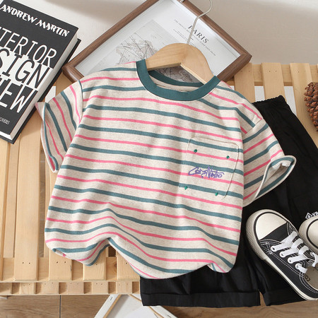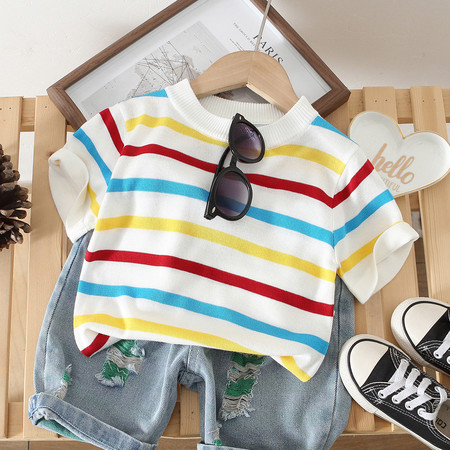 优米&Y6350女童条纹防晒罩衫短裤套装