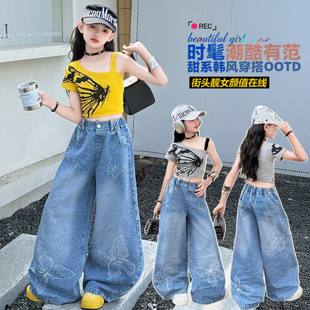 潮童坊&617泡泡牛仔沙滩裙套装