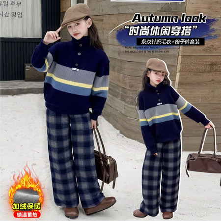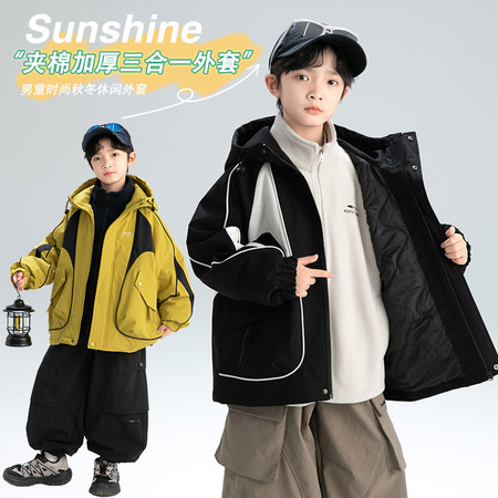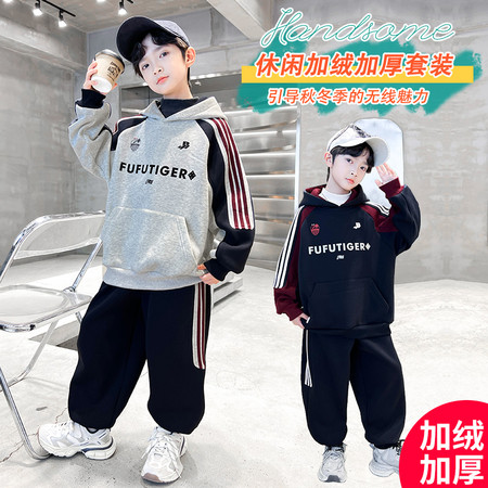 亿棵树童装&Q1290款航线棉衣连帽毛衣套装