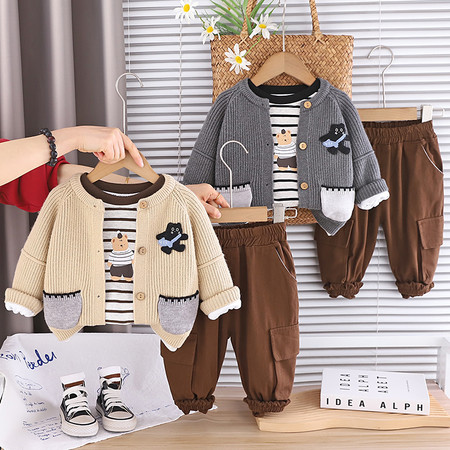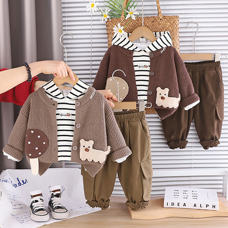 五小七【原五七潮童】&SJ8408小象条纹开衫三件套
