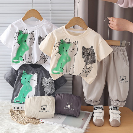 五小七&SJ8429满印大字母涂鸦短袖三件套