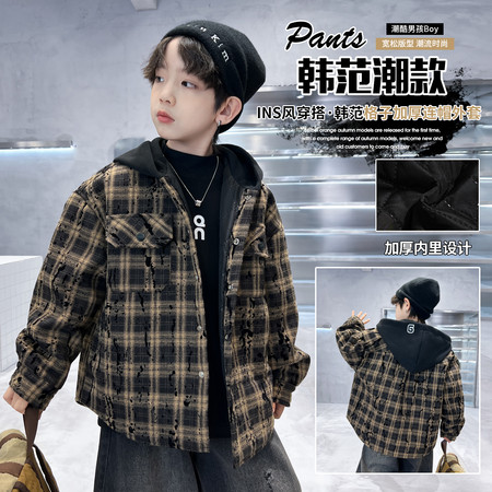 糖果小镇网供&TGXZ8512男童格子一体绒加绒衬衫