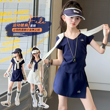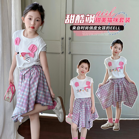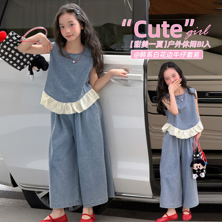 五小七&SJ8430清新晕染牛仔短袖三件套