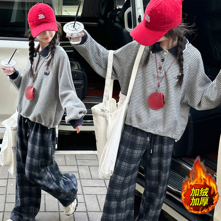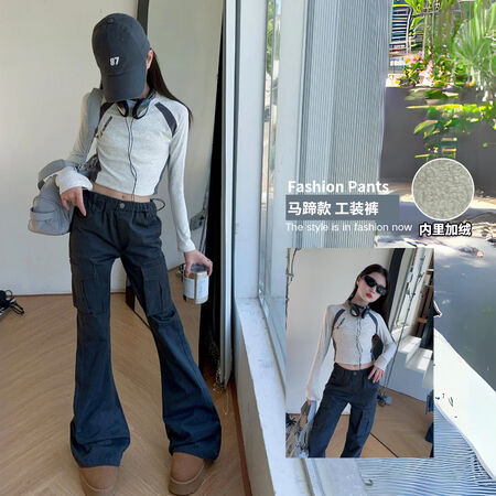 童多乐&756款复合奥粒绒纯色喇叭裤