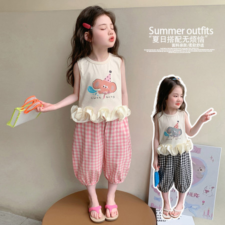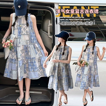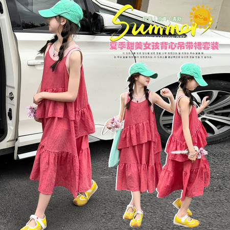 优米&Y6378女童背心吊带裙套装