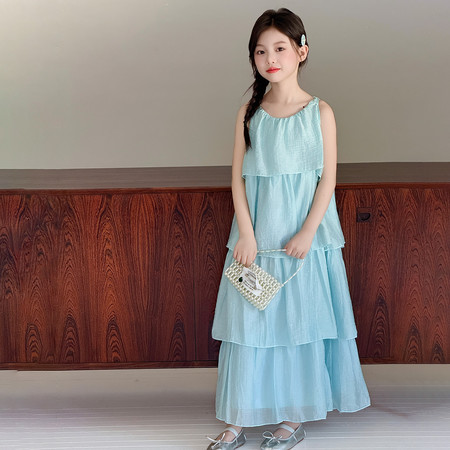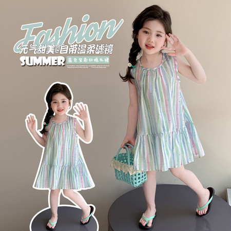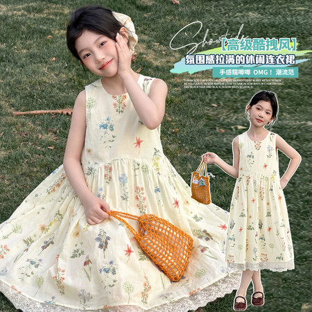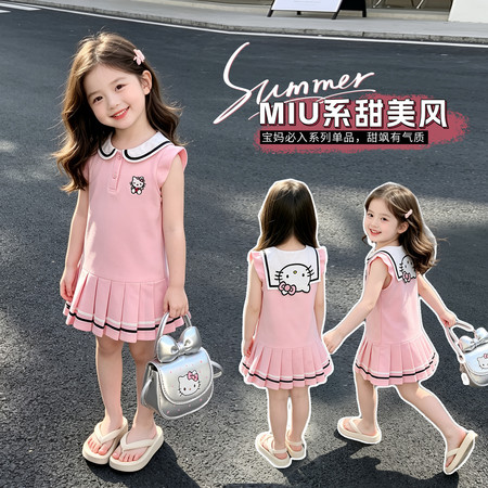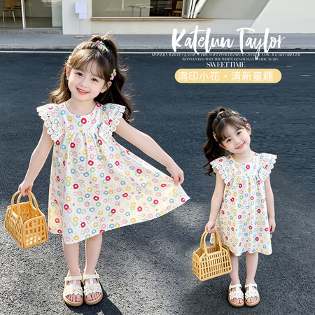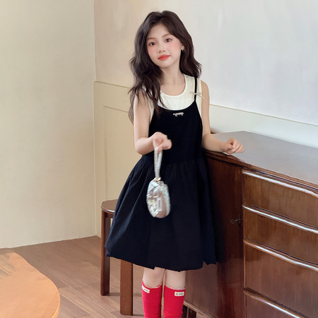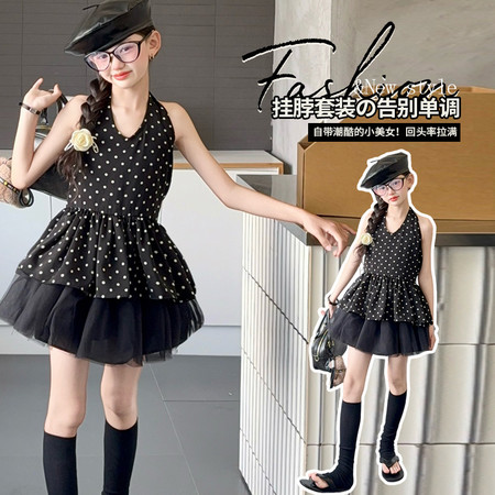 蕊蕊&R219款圆点花边牛仔马甲连衣裙两件套