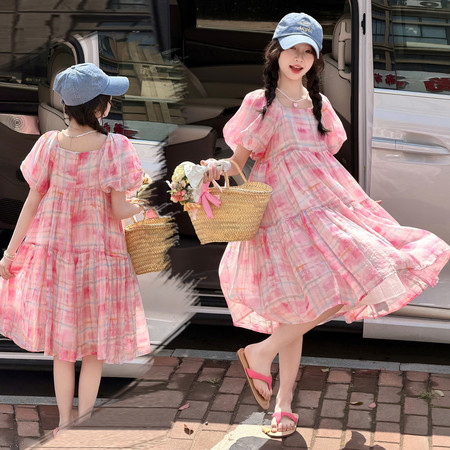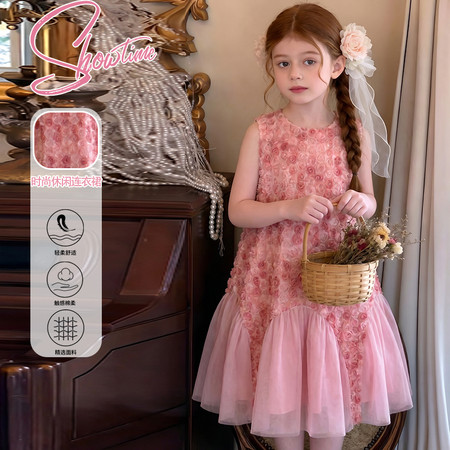 创未服饰&女童粉色拼接裙子