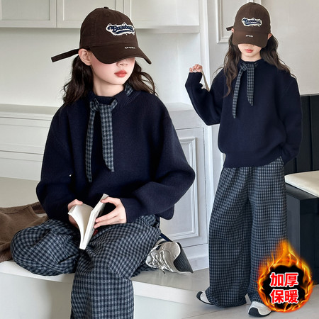 乐橙&LC2592可爱腊肠狗毛衣格子裤套装