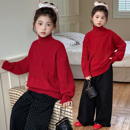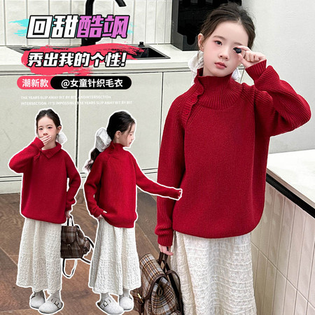 星星年华&DX04760酒红加绒贴标毛毛衣