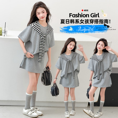 萌城杰达&2618款飞袖衬衫白短裤套装
