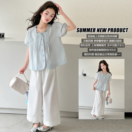 潮.尚&CS8527棉布衬衫印花宽松裤套装