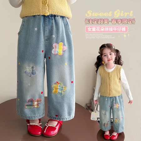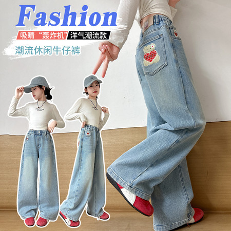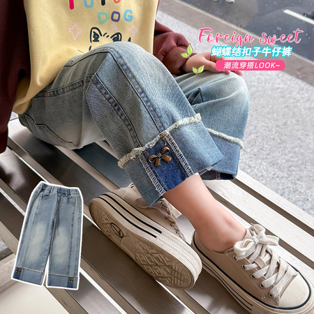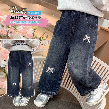 D219蝴蝶结卡通刺绣加绒牛仔裤