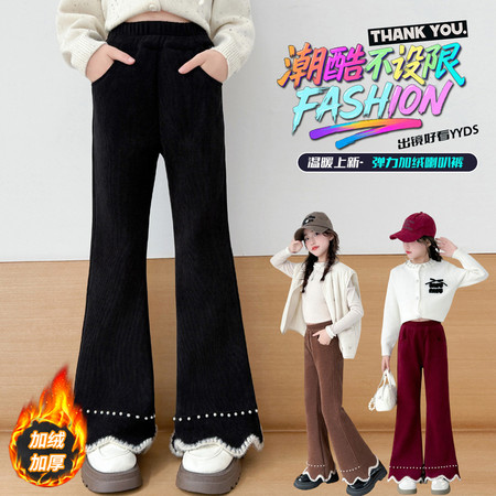 小时尚&牛仔花边喇叭裤奥粒绒加绒