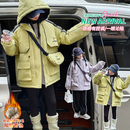 韩菓儿(甜心班纳)&A25143款牛角扣毛领加厚休闲外套