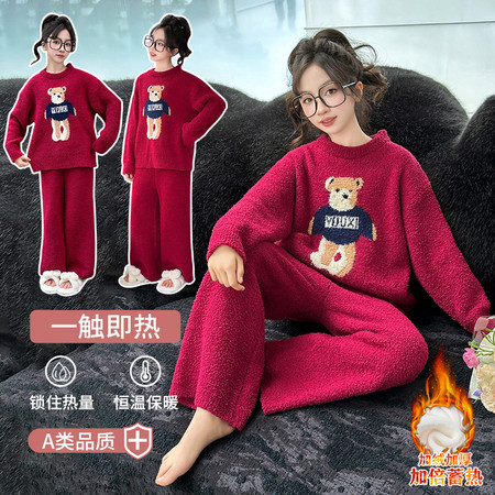 皖伴贝童装&家居服813红白撞色毛绒家居服