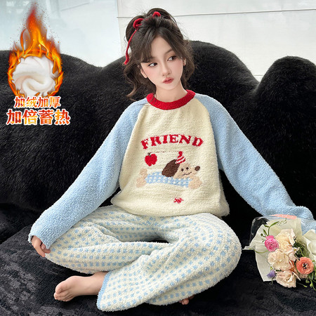 韩菓儿(甜心班纳)&A25161款圆点珊瑚绒睡衣套装