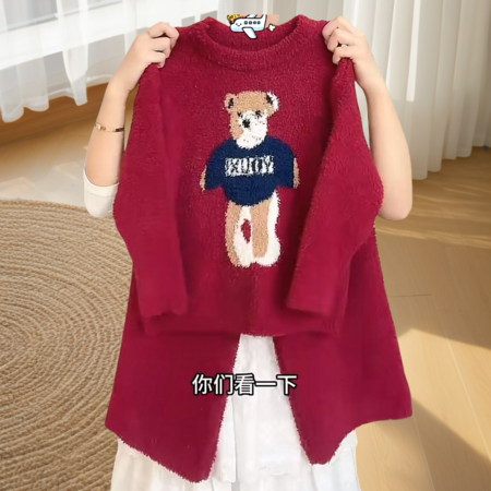 薇美&372款费尔岛红色毛衣牛仔裤套装