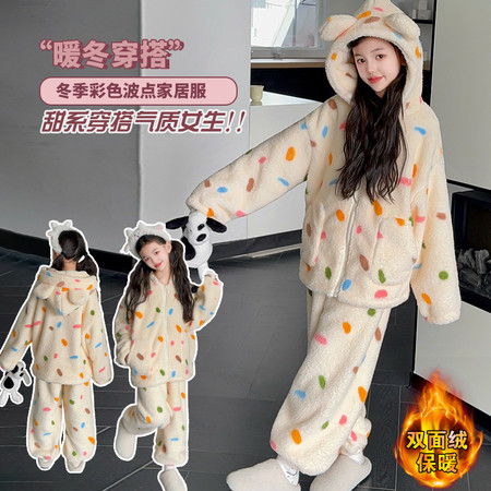 丸子家(贝壳笛)&拼色半边绒家居服两件套