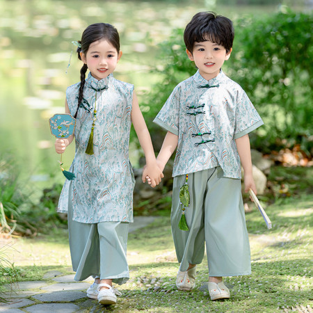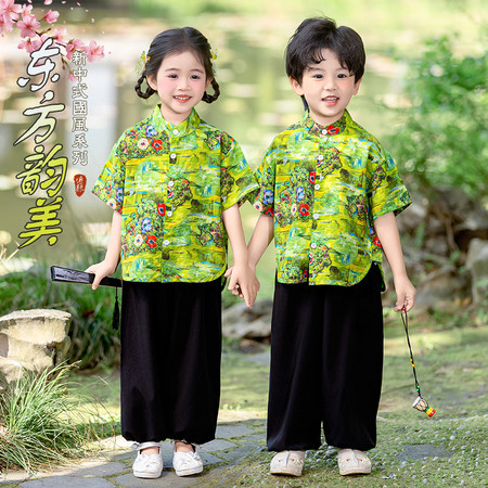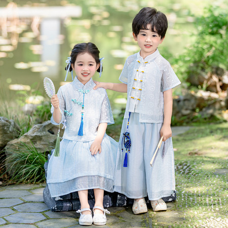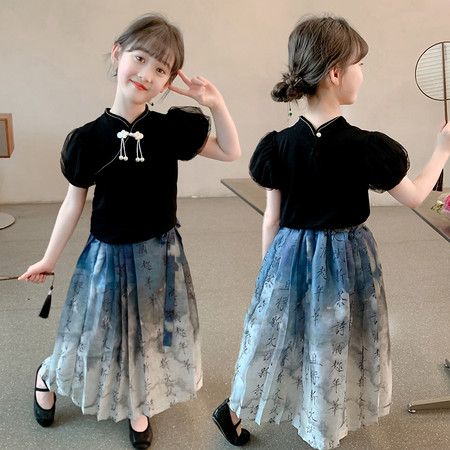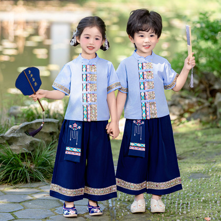 nn童装&25023--湛蓝千字文马面裙套装
