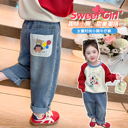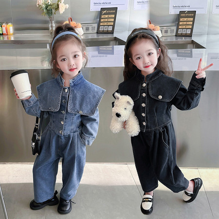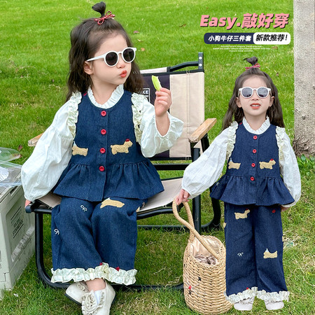 邻家果果&25130腊肠狗假两件牛仔裤套装
