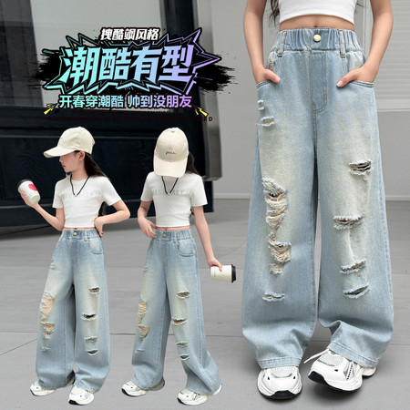 蕊蕊&R156款刺绣猫咪烫钻牛仔裤