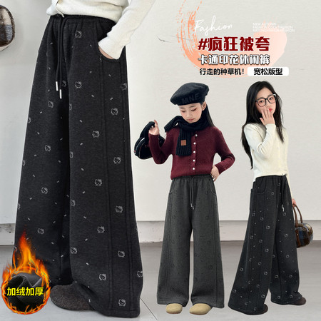 豪涵童装&冬款加绒蝴蝶结花边阔腿长裤2616