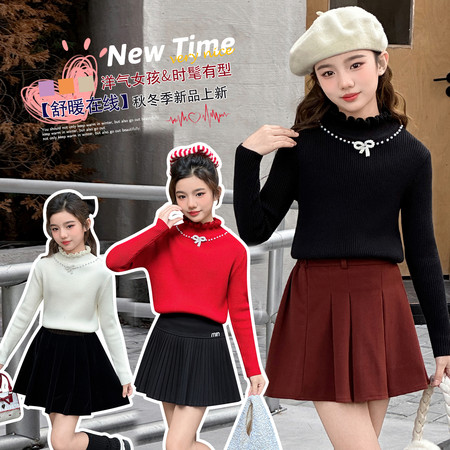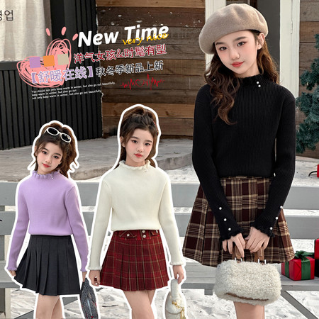 俏巴兔&24-2810年款毛衣加绒格子裙