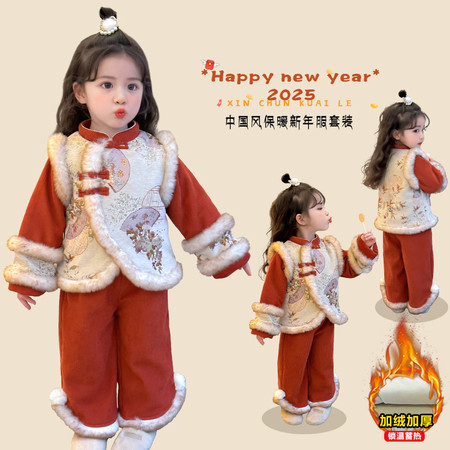 皖伴贝童装&2025827花苞格子衬衫黑马甲套装