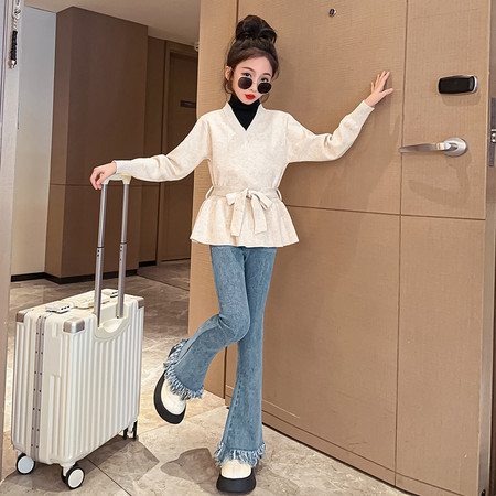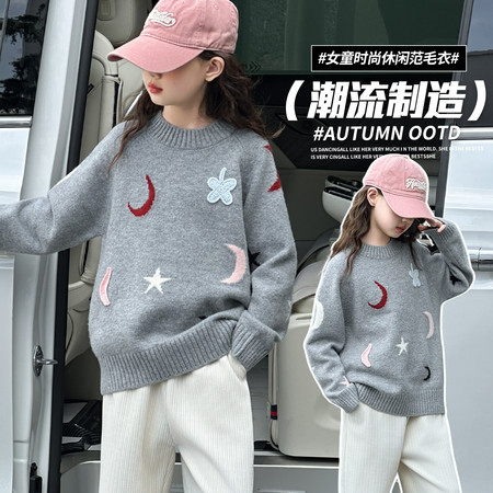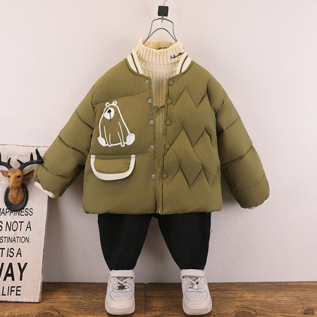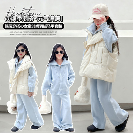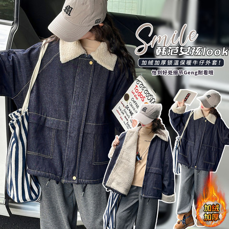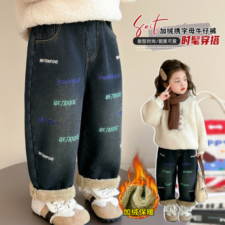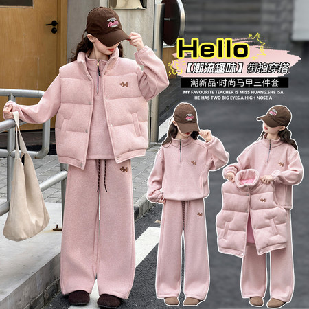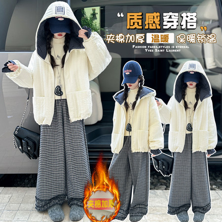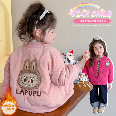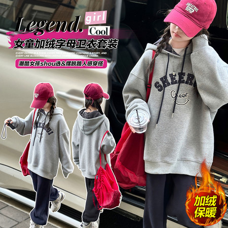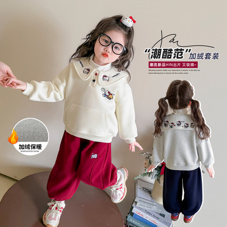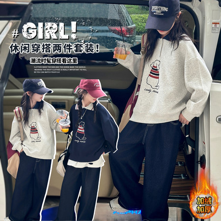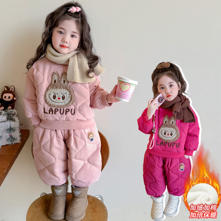 米咔精灵&2771笑脸刺绣加厚外套弯刀裤套装休闲