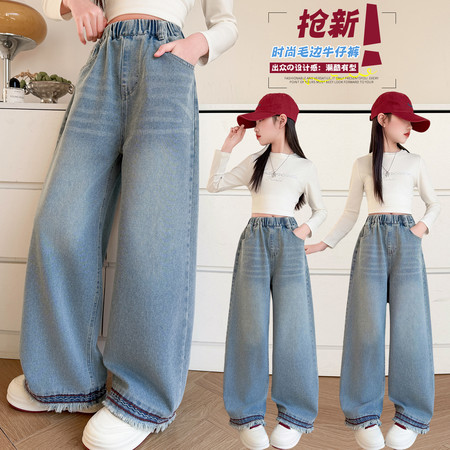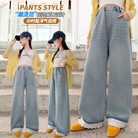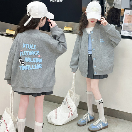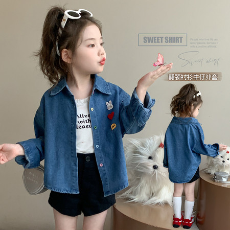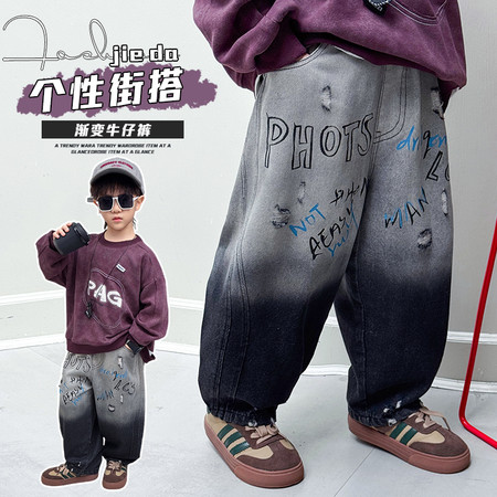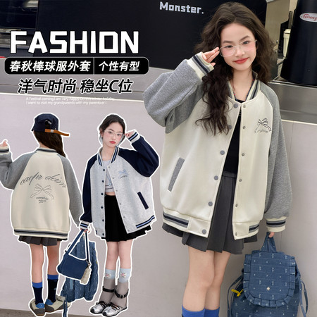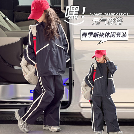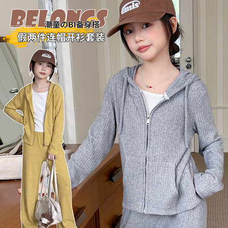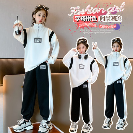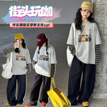 苹果甜甜&6501款娃娃领细条卫衣牛仔裤套装