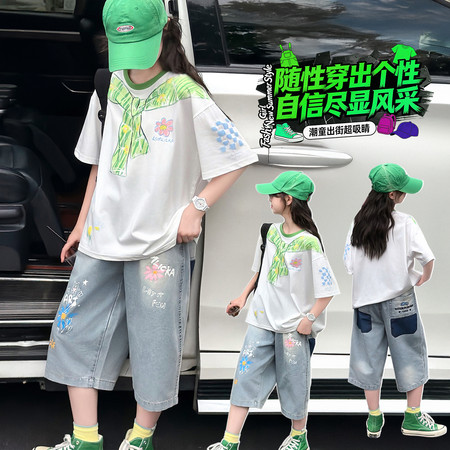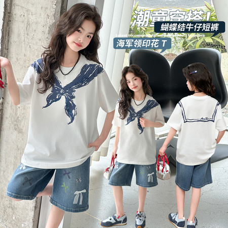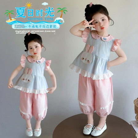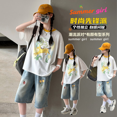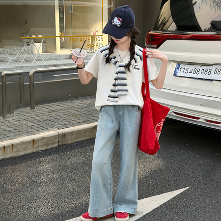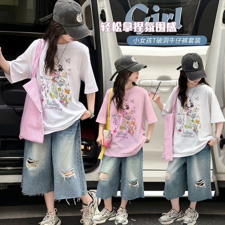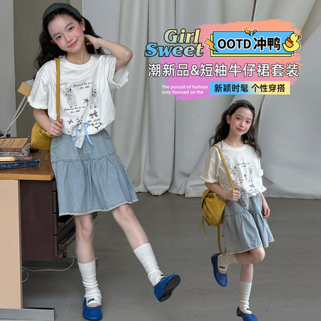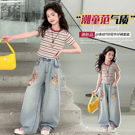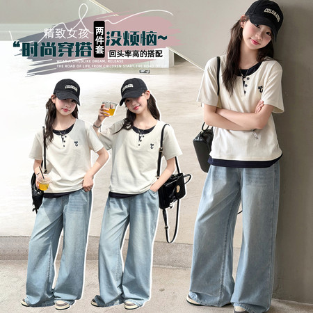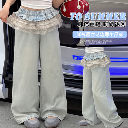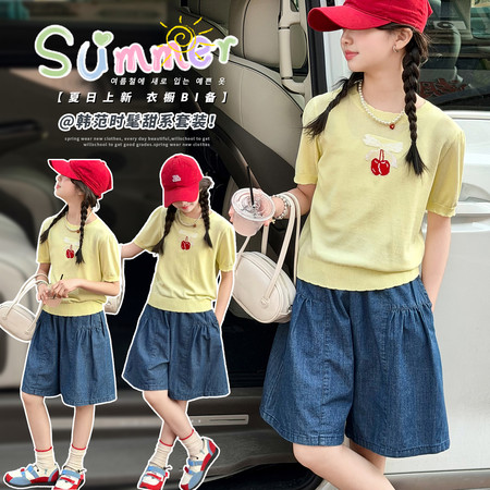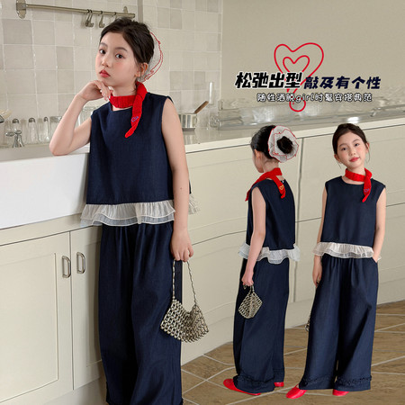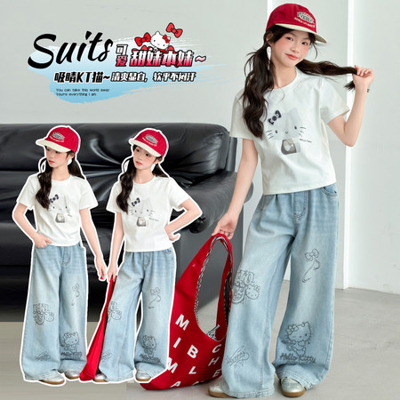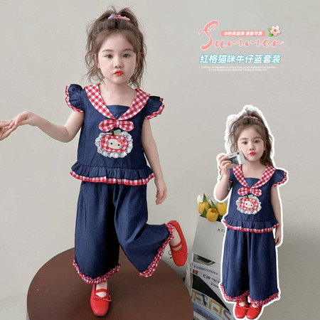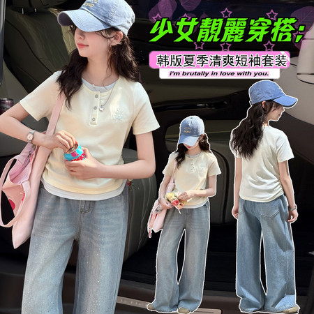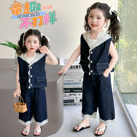 韩菓儿(甜心班纳)&A26025款刺绣花边牛仔裤套装