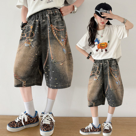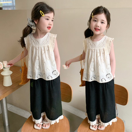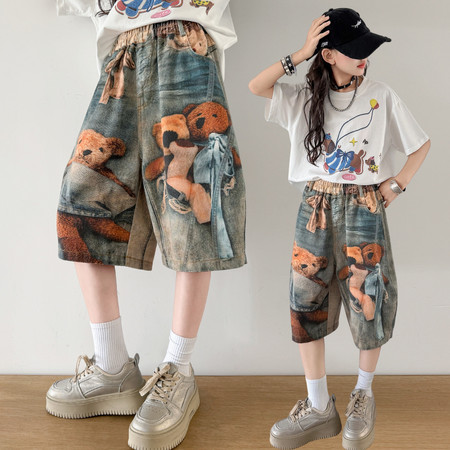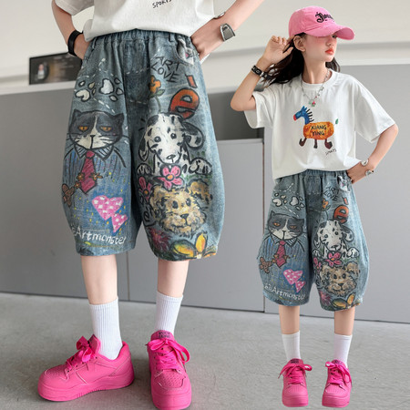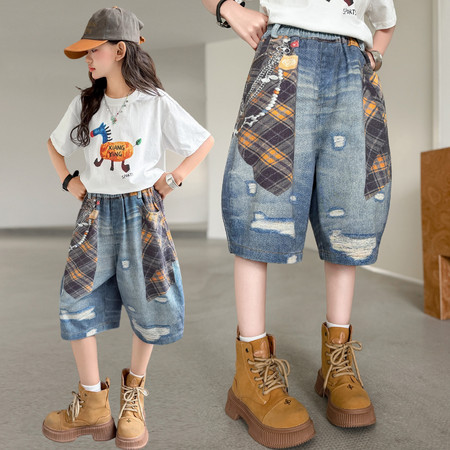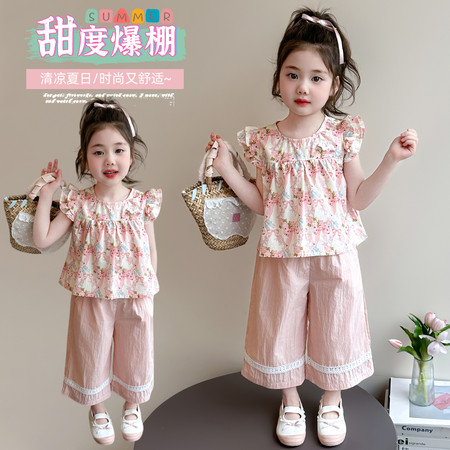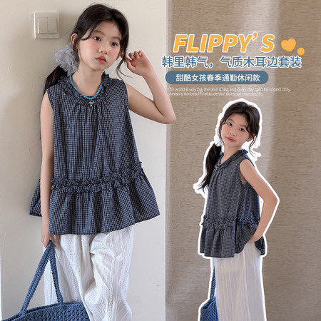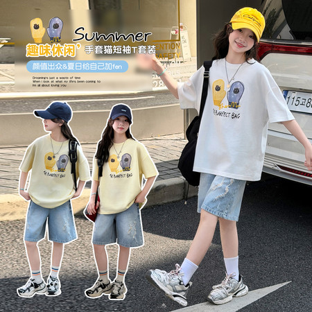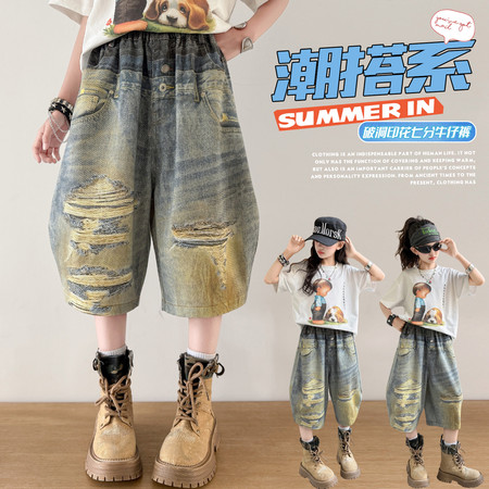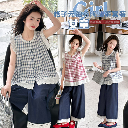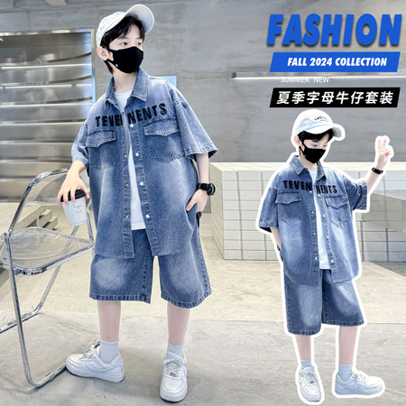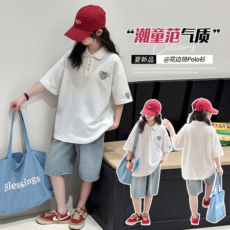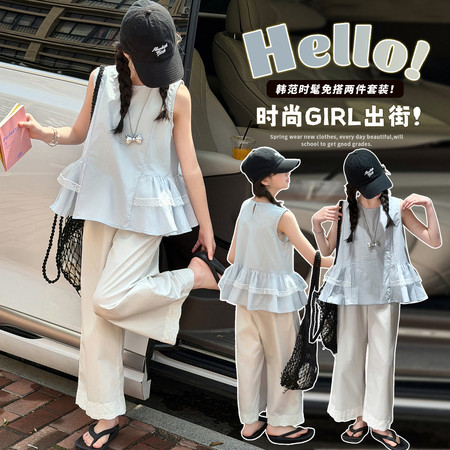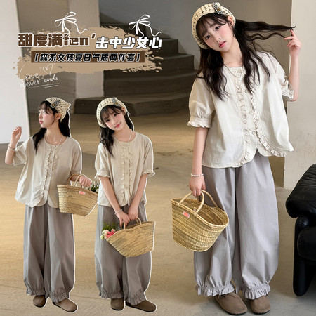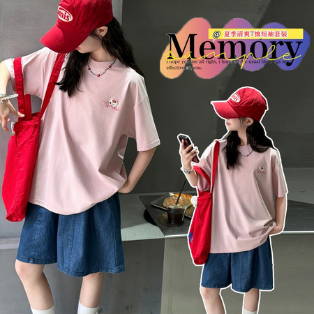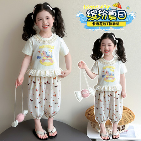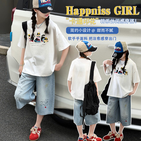 韩菓儿(甜心班纳)&A26025款刺绣花边牛仔裤套装