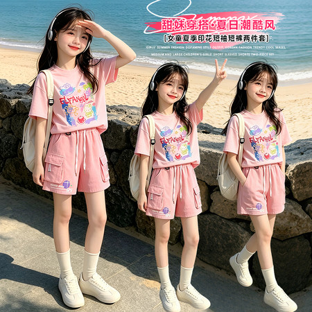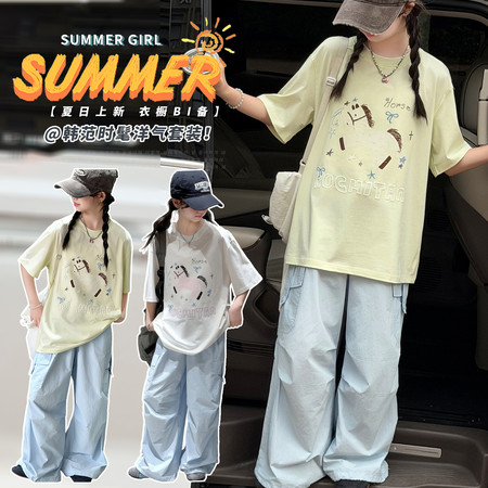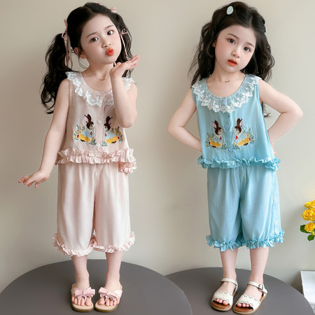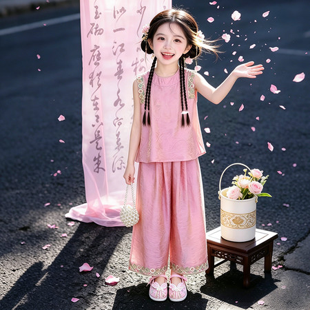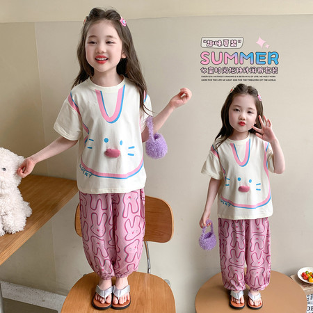 nn童装&25095---夏款粉色玉兔马面裙套装