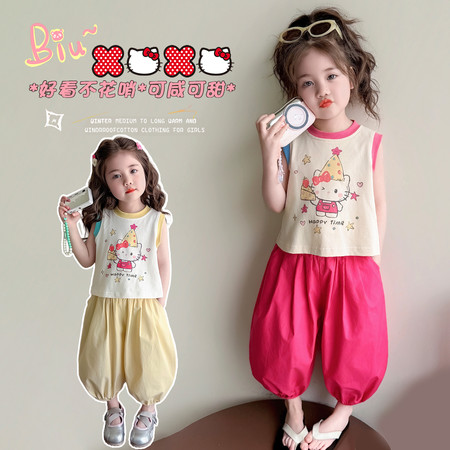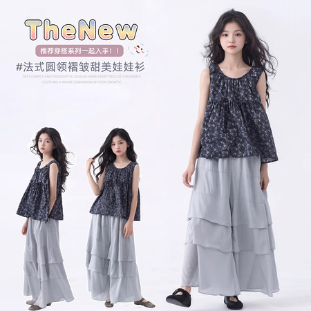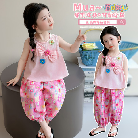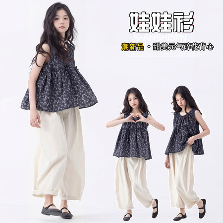 萌丫丫(原大手牵小手)&MYY无袖碎花上衣休闲裤套装
