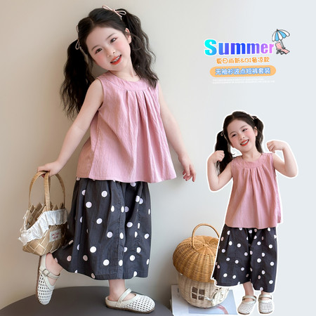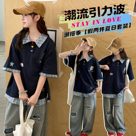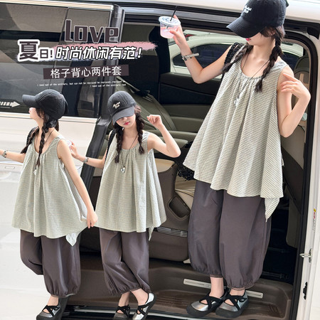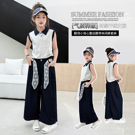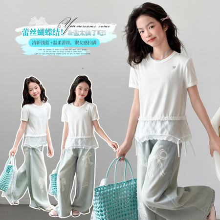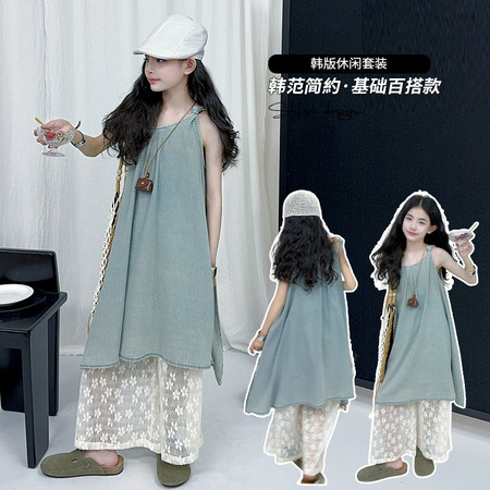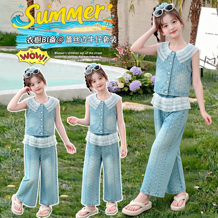 蓝月亮&2617款甜美无袖花边裙牛仔裤套装