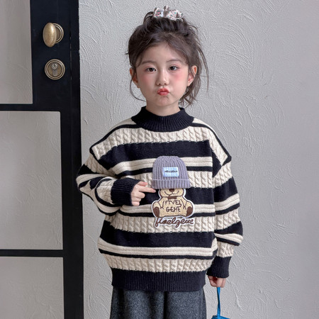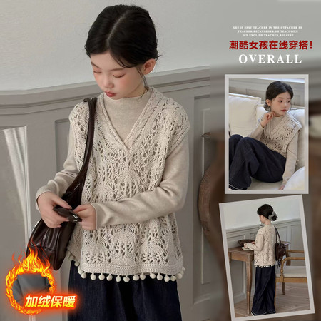 珊妮童装&2571-1格子衬衫毛衣背心牛仔裤套装
